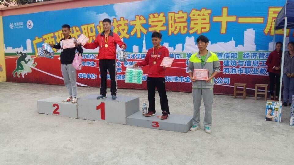 运动会的田径场上,梁真英,蒙政龙,叶武华,黄臣仿,韦倩嫦,袁明蕊,蒙毓,韦德良等同学用他们青春的脚步,青春的速度,青春的活力,青春的激情,驰骋赛场,他们的身上尽情体现迎接自我,挑战自我,战胜自我的决心,他们为电子系夺得四连冠贡献自己的力量,环形的跑道一圈又一圈,他们一次又一次的超越对手,他们是电子系的英雄。