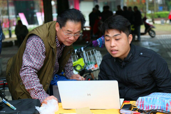 河池市思源广场设点,为广大市民提供电脑义务维修服务。