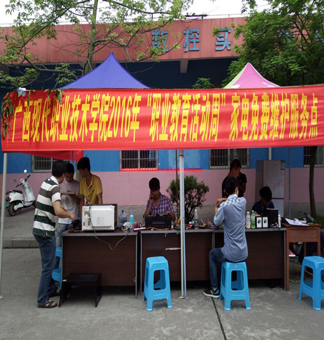职业活动周同学们结合自身所学的专业技能,在余老师亲自做技术指导下。在校园开展的义务维修服务活动,为附近居民和校内老师修理一些各种各样损坏的小电器。在活动过程中,同学们发扬不怕苦、不怕累的精神这一天共计维修30余台家庭小电器,顺利的完成了本次义务维修活动。本次活动促进同学们之间的友谊,提高同学们的动手操作能力和社会实践能力。