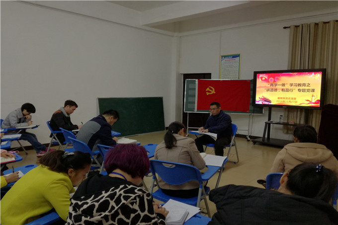 2016月11月27日晚上8:00,教育系党总支在三办102室开展“讲道德、有品行”专题党课,学院纪委书记冉景峰主讲,我系党总支全体教师党员及部分学生党员参加。
