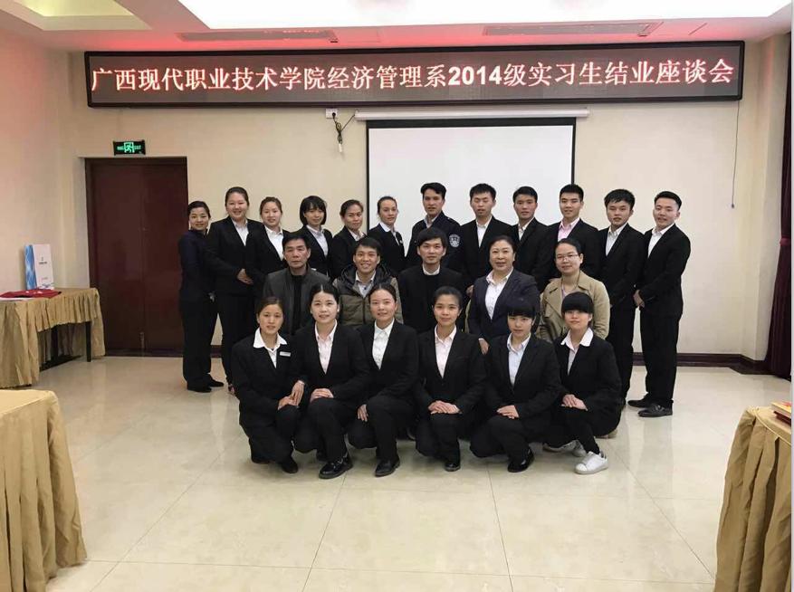 (经济管理系讯)3月22日上午,我院校企合作单位——东昇国际大酒店在其酒店内为我院14级酒店管理专业实习生举行实习结业座谈会,经济管理系党总支副书记叶秉高应邀参加,广西第一湾国际旅游股份有限公司副总裁吴德强参加座谈。