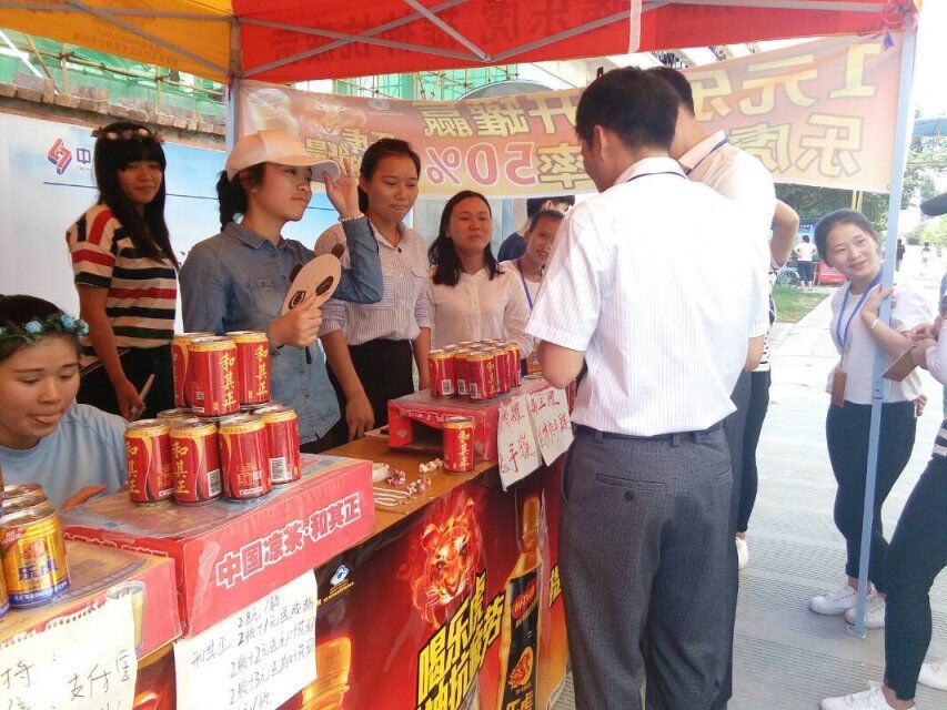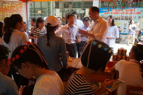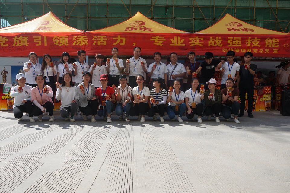 【经济管理系讯】5月26日下午,15营销、15营销春季班的同学在实训课上真正结合了专业所长,在校园实训超市门前搭帐篷摆展台销售红牛和和其正,分小组进行实战营销。经济管理系党员教师亲临现场,结合“三会一课”学习教育,为同学们加油鼓劲。