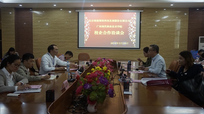 【经济管理系 讯】3月29日14:00于图书馆会议室,经济管理系与北京洛捷斯特科技发展股份有限公司进行校企合作洽谈会,出席会议的人员有洛捷斯特科技发展股份有限公司副总经理连志涛,教学服务部经理陈瑶,教学顾问吴桦,广西现代职业技术学院院长助理、经济管理系主任杨奎,经济管理系副主任叶秉高、潘杨、刘泽汀以及全体专任教师。