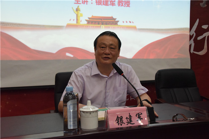 银建军教授以“青春与信仰”为题展开讲座内容,主要围绕“信仰是如何产生的、信仰与我们的关系、我们需要什么信仰以及如何确立信仰”四个方面。银教授循循善诱,用鲜活的事例、睿智的语言,让学生们明白了“人民有信仰,民族有希望,国家有力量”的深层含义并提出了确立信仰的方法:坚定理想信念,加强理论学习,增强忧患意识,树立人生大格局,立足本职。