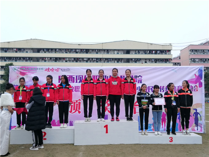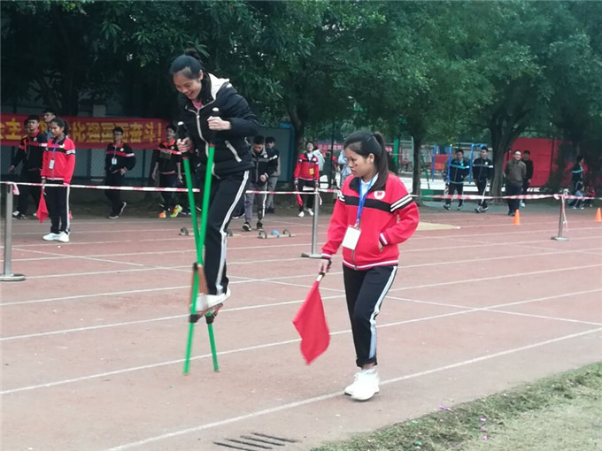 女子三人板鞋50米竞速接力赛:女一队(17学前5班龚榕莹、陈婷、郑春雲)、女二队(18学前衔接2班黄月迎、陆英、杨依玲)分别获第一名、第二名;