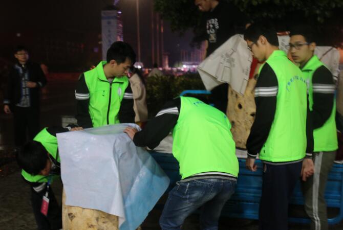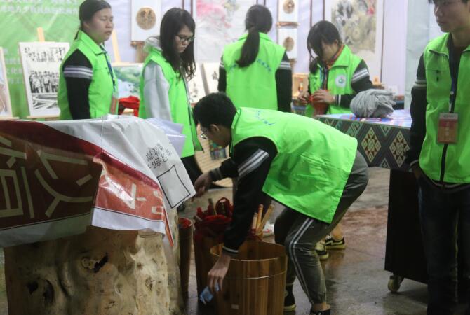 喧嚣热闹的一天展演过后,所有人都已休息,唯有志愿者们还坚守岗位,他们严