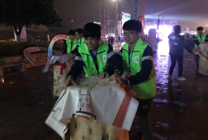 活动顺利开展立下汗马功劳。远远看去,身穿绿色背心的他们犹如绿色希望之光成为