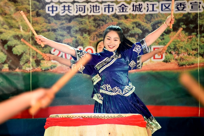 2019年4月2日,“壮族三月三•河池嘉年华• 职教展风采” 活动在河池市体育广场拉开帷幕,活动由河池市委宣传部、河池市文广新体局、市民宗委、河池电视台、河池日报社主办,广西现代职业技术学院、河池市职业教育中心学校和中共金城江区委宣传部共同承办。 教育系皮鼓、壮族蚂拐歌舞、丰收舞、毛南族民歌等7个民族节目参加了综合性民族文化表演。教育系展区展示了五十六个民族的景泰蓝工艺画、民族技艺刮画等富有民族风情的手工艺作品,供游人展演与体验,让广大观众在欣赏综合性民族文化表演的同时,也看到了民族传统工艺生生不息的传承。 活动前期,教育系精心筹备组织,系部领导和教师夜以继日的对学生的动作整齐度进行细致的训练,展演获得了社会各界及学院领导的一致好评,充分展示了我系学生优秀的技能水平和民族文化进校园的成果。