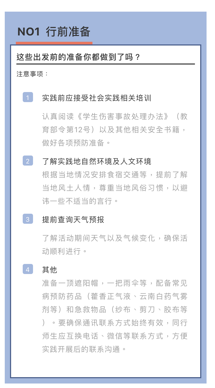 正所谓安全无小事、天气情况、交通安全、身体状况、异地出行等因素都会给大家的实习过程带来或多或少的安全隐患,为了保证各位同学的顶刚实习活动顺利进行,来看看小编给你准备的实习社会实践安全指南吧!