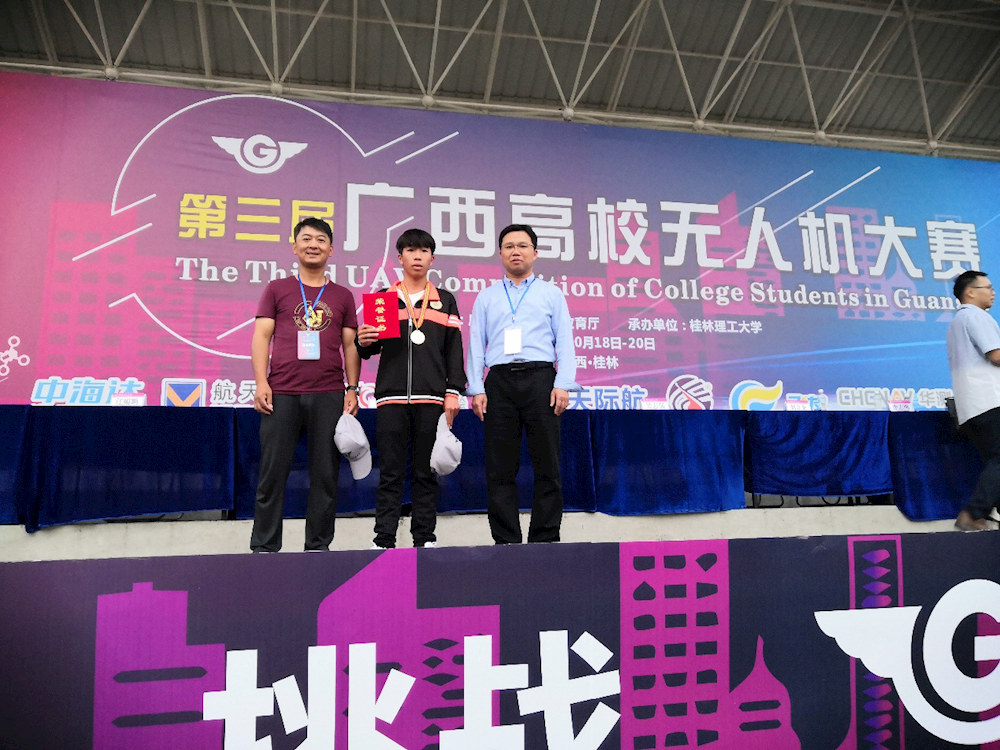 由广西壮族自治区教育厅主办的第三届广西高校无人机大赛,于2019年10月18日到20日在桂林理工大学比赛,本次大赛本科与专科学生同台竞技,共有156支队伍参赛,每一支队伍可以根据自身情况选择性参加9个项目的比赛,本次大赛中,每一个项目的参赛队伍均超过60支队伍,竞赛异常激烈,我系学生努力力拼搏,发挥正常水平,最终荣获6个一等奖、4个三等奖,团体总分一等奖第一名。