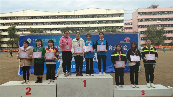 女子高杆绣球项目:女子一队(18小教8班卢拉、18小教16班蔡红早、18小教11班赵莉)荣获第一名;女子二队(19小教15班黄丽莹、19学前2班陆娇梅、18小教11班黄艳芬)荣获第三名;