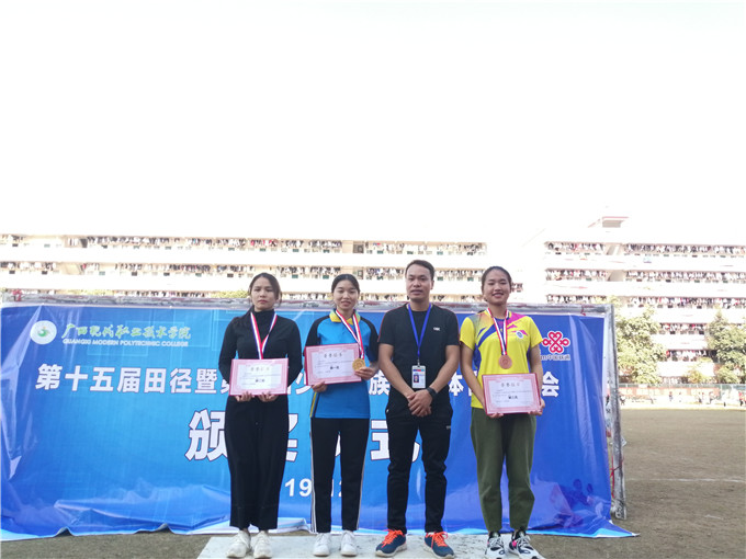 女子跳远:18小教6班黎水凤、18小教10班许爱仁、19学前5班李玉桃、19小教20班陶小莲分别荣获第一、第二、第三、第四名;