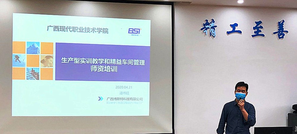 为提高系部教师的实训管理能力,贯通“7S”管理模式和要求,精细实训管理方式方法,做好管理可视化工作,4月21日下午,机电系邀请广西博斯特科技有限公司潘炜廷进行培训指导,系部全体教职工参与了会议。
