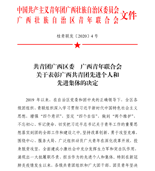 广西共青团 广西青年联合会关于表彰广西共青团先进个人和先进集体的决定202005030046005684.pdf