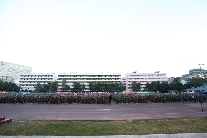 当东方的太阳缓缓升起,随着6时30分集结号的吹响,在学院党委副书记、院长黄绍光,副院长黄耀、杨奎,全体军训教官、学院全体教师一同列队准备下,2020级新生已然整装待发。