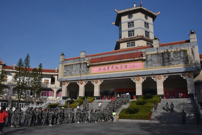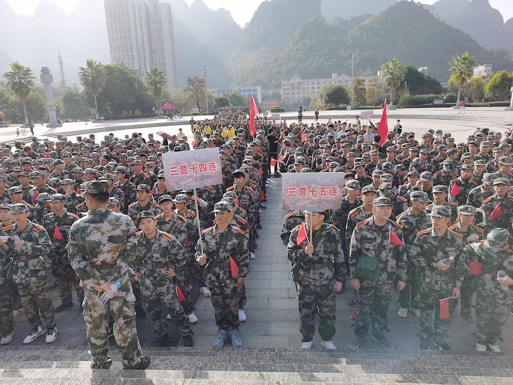 行军路线途经新建西路、城西大道等路段后,到达休整地民族公园。机电系教师、辅导员及新生班助全程紧跟我系三营12连至15连部队,行军队伍一路军歌嘹亮、口号昂扬、步伐矫健,即使大汗淋漓也不言放弃。在民族公园,机电系师生们共同参观了河池革命纪念馆,了解河池的革命斗争史,感受革命精神。机电系党支部对师生进行爱国主义教育活动,共同歌唱国歌、军歌,提高学生的爱国主义精神,培养集体荣誉感,增强凝聚力。参观活动结束后,师生们有秩序地原路返校,顺利完成此次拉练任务,全程约徒步15公里,耗时近四个小时。