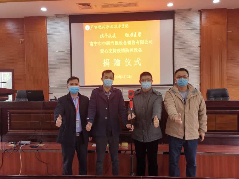 2020年4月2日上午,南宁市中联汽保设备销售有限公司向我院捐赠1套人体红外热感成像仪,用实际行动助力学院科学战“疫”。机电工程系岑华主任、吴杰副主任、中联汽保设备销售有限公司经理黄辉钧及系部办公室人员出席了捐赠仪式。