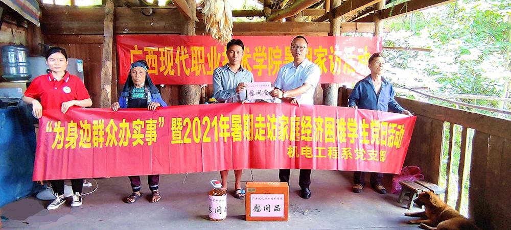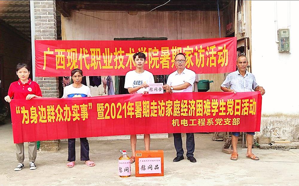 为进一步加大对家庭经济困难学生资助政策的宣传力度,加强师生、家校之间的联系和交流,也为做好贫困生相关教育、资助和帮扶等工作奠定基础,8月1日至8月3日,机电工程系党总支书记黄仕珍、辅导员黄钰钫等一行5人,到柳州市融安县、三江县,对系部贫困学生肖宗和、白科英开展暑期家访活动。