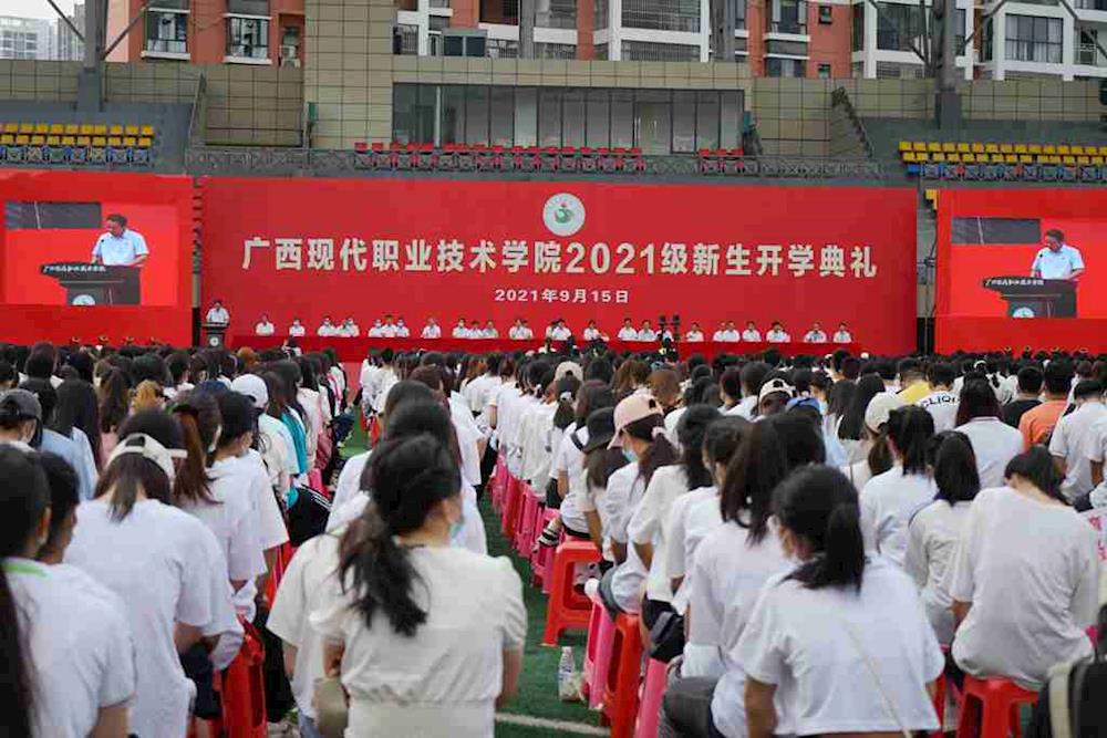 9月15日上午7时,我院2021级新生开学典礼在西校区田径场举行。河池学院党委副书记、学院党委书记韦伟松,院长黄绍光,河池市职业教育中心学校党委书记黄丹峻,副院长卢森焕、黄耀、杨奎出席。学院全体教职工、21级全体新生、班级助理参加开学典礼。典礼由副院长杨奎主持。