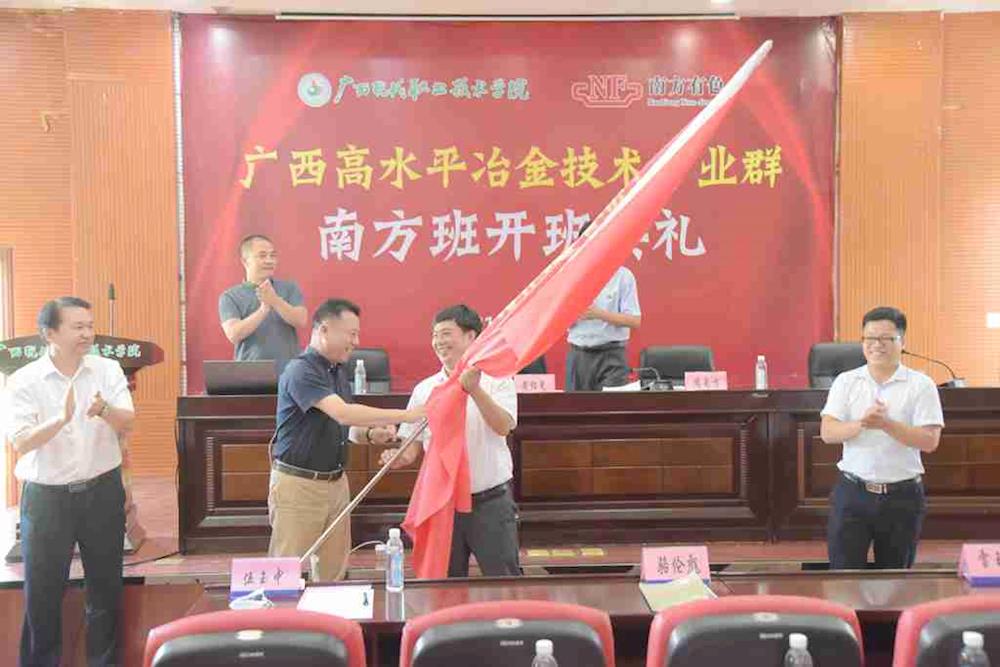 为进一步落实创新型工程人才培养,9月28日下午,我院与南方有色集团共同举办的广西高水平冶金技术专业群冶金技术专业南方班和分析检验技术南方班(以下简称“南方班”)在学院顺利开班。学院院长、河池市职业教育中心学校校长黄绍光,南方有色集团董事长周南方等领导出席开班典礼。学院有关部门领导、资源系教师代表参加开班典礼。开班典礼由学院副院长卢森焕主持。