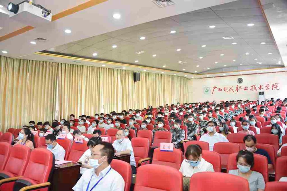学院院长、河池市职业教育中心学校校长黄绍光在典礼上做讲话。黄绍光表示,学院与南方有色集团多年来持续开展校企合作,取得了显著成效。举办“南方班”,标志着双方校企合作进入了一个新阶段,双方将进一步完善育人机制、创新技术技能人才培养模式、提升人才培养质量。黄绍光希望同学们能珍惜机会,通过学习,从理论和实践的结合上提升自己;要严格遵守学院和企业的各项规章制度,刻苦学习,掌握专业技能。