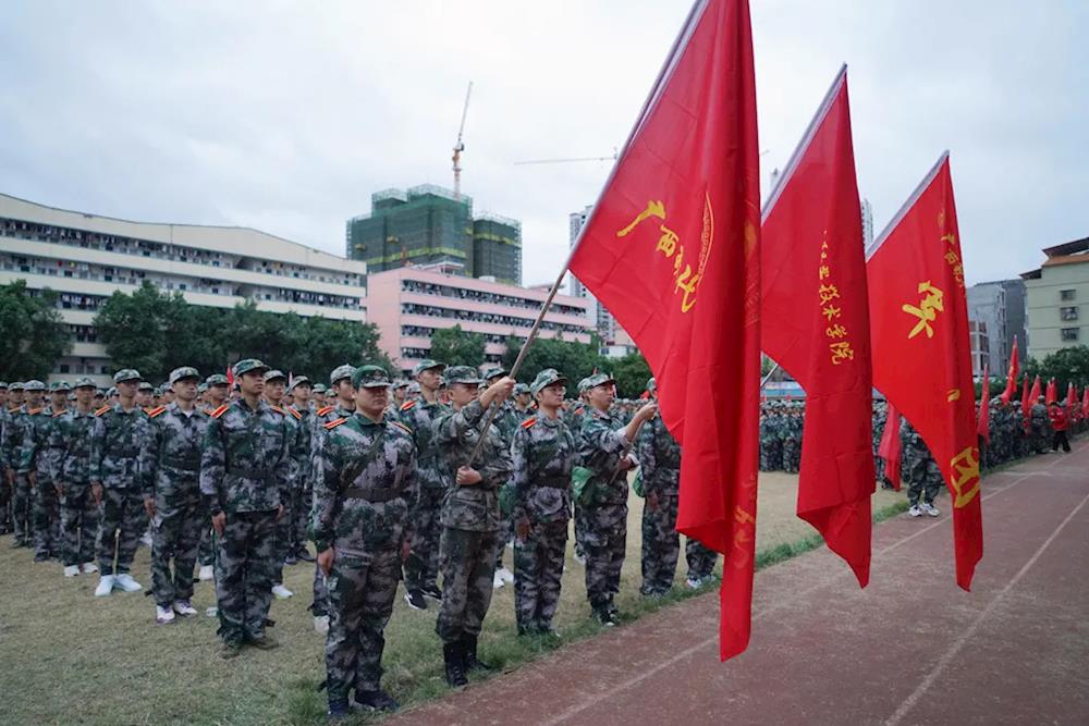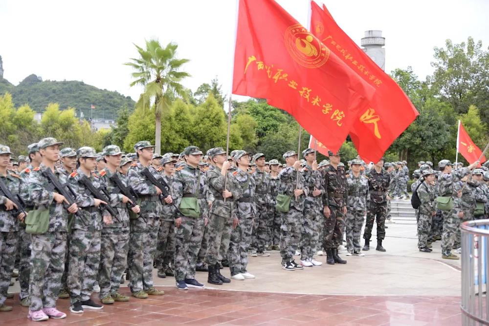 上午7时,师生们手举五星红旗,步伐整齐、精神抖擞地从学院出发。一路上,师生们高举旗帜,高喊嘹亮的口号,迈着矫健的步伐。在途经新建西路、城西大道等路段后,师生们到达休整地民族公园。在民族公园,师生们共同参观了河池革命纪念馆,了解河池的革命斗争史,感受革命精神。各党总支、党支部,以及各营(连)分别对师生进行爱国主义教育活动,培养学生的集体荣誉感,增强凝聚力。参观活动结束后,师生们有秩序地原路返校,此次军训徒步拉练活动圆满结束。