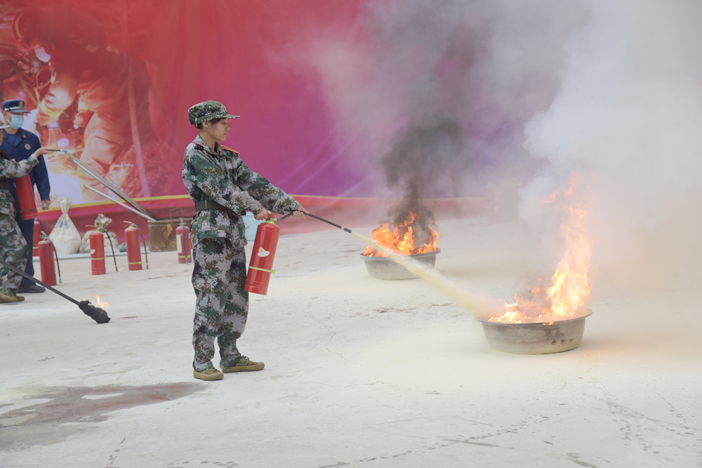 金城江区消防救援站站长左龙龙对此次演练进行点评。他向大家强调掌握应急避险知识的重要性,然后从消防安全常识、火场逃生、灭火器的使用等几个方面,对校园消防安全预防措施及火灾逃生技巧作了全面生动的讲解。在消防官兵的指导下,同学们实地参加灭火演习,并逐步掌握灭火器使用方法,亲身体验灭火过程。