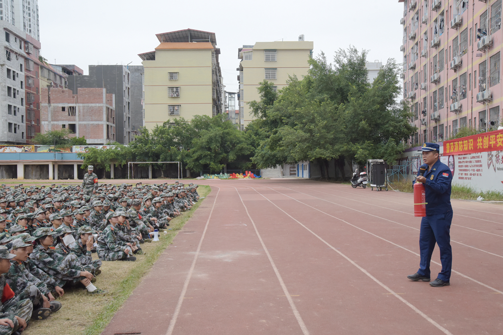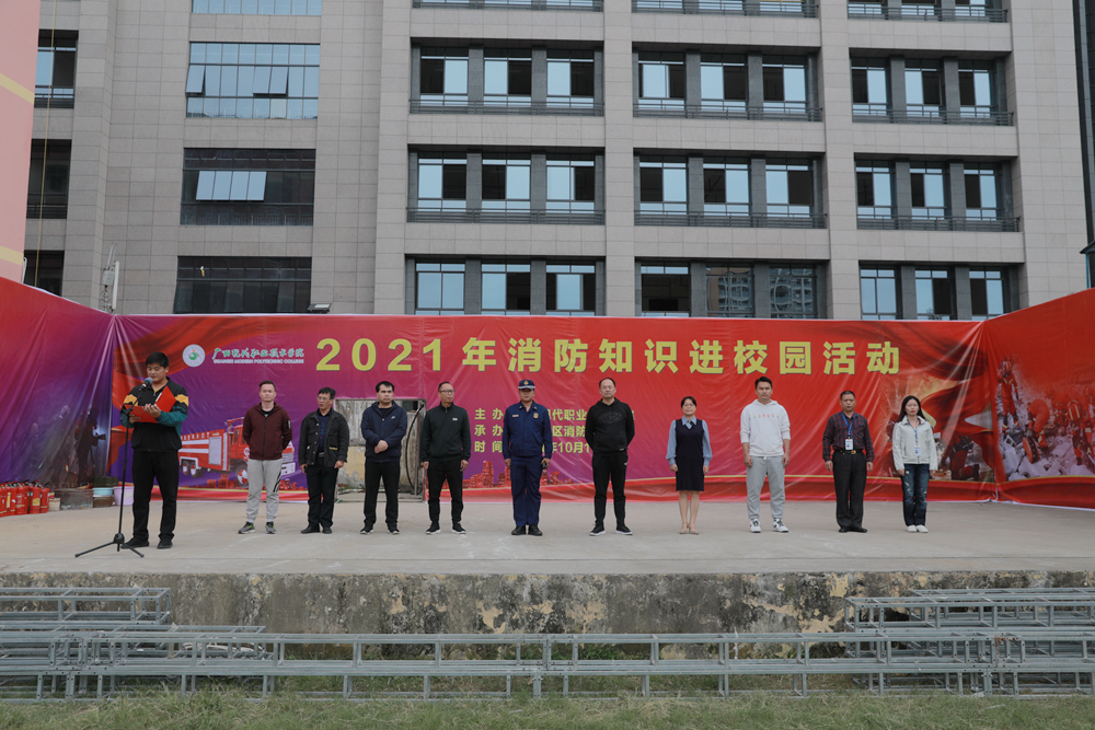 为提高学院师生的消防意识与应变能力,普及消防器材使用知识,掌握应变火灾的逃生技能,10月18日下午,值2021级新生军训之际,学院在田径场举行消防安全知识进校园暨火灾应急疏散演练活动。学院副院长杨奎、金城江区消防救援站站长左龙龙出席活动,保卫处处长覃建雅,副处长韦俊、罗明都,学生安全工作处处长李玲,宣传部副部长唐迪,各系党总支书记及2021级3900多名新生参加活动。