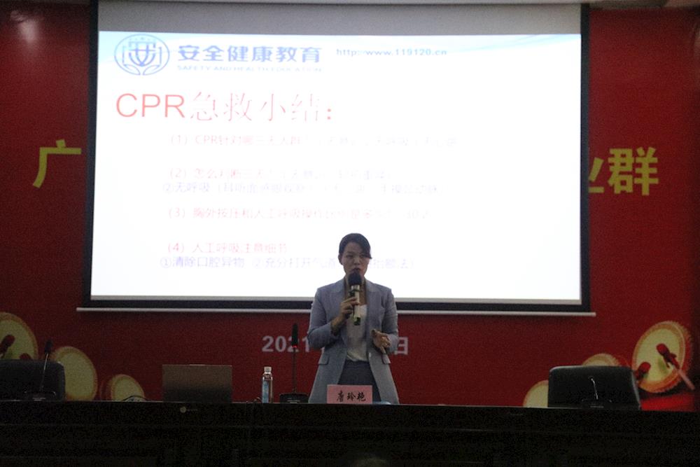 唐玲艳和黄娟连分别在两个会场以“师生健康中国健康”为主题,用生动的例子,诙谐的语言,从预防和应对校园突发安全事故急救常识,讲到预防心血管疾病等知识。讲解过程中,亲自示范,让大家掌握科学的救助常识,效果十分良好。