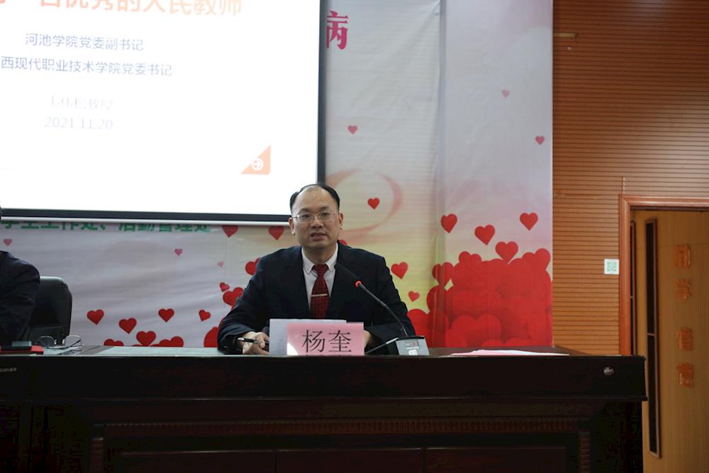 11月21日下午,2021年新教职工集中培训结班仪式在第二学术报告厅举行,院长黄绍光,副院长卢森焕,副院长杨奎出席,各系部主要领导及全体2021年新教师参加仪式。结班仪式由杨奎副院长主持。