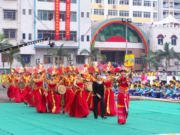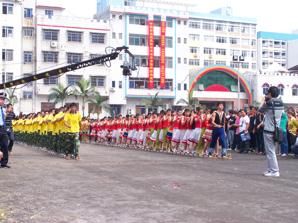 院党委宣传部讯(曾严)跳竹杆舞、打陀螺赛、竞长板鞋。9月22日,红水河民族体育欢乐节开幕式暨少数民族传统体育展演在市体育场隆重开幕,各民族同胞带着本地精彩的民族传统体育项目尽情表演,展示了广西、河池丰富多彩的民族体育项目,增进了全市各民族同胞的深厚情谊。我院学生参加的“长板鞋竞走表演”项目打破了基尼斯大世界记录。