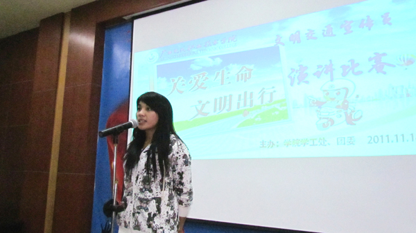 学院党委宣传部综讯(韦安然 曾严)于2011年11月14日晚,学院学工处、团委在学院第一学术报告厅举办“关爱生命 文明出行” 广西百万青年交通宣传员演讲比赛广西现代职业技术学院初赛。