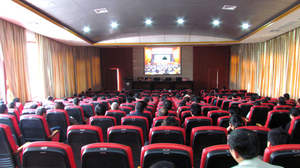 院党委宣传部讯(莫春燕) 为大力宣传表彰我区在创先争优活动中涌现的先进人物,发挥先进典型的引领示范作用,进一步深化创先争优活动,卫生部、自治区党委于2011年11月23日上午9:00在自治区党委礼堂召开追授蓝云同志荣誉称号命名表彰大会暨蓝云同志先进事迹主题情景报告会,并通过广西卫视和广西新闻网现场直播会议实况,我院党委书记邓福田及教职员工在学院第二学术报告厅全程集中收看。