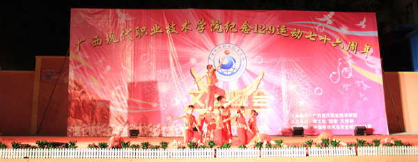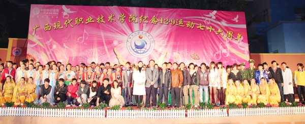 院党委宣传部讯(曾 严 莫春燕) 为纪念“一二•九”学生爱国运动76周年,我院于2011年12月8日晚在学院文体广场隆重举行了文艺晚会。学院党委书记邓福田,党委副书记、纪委书记覃志航,副院长冯忠伟以及全院师生员工共同观看晚会。