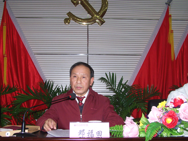 会上,学院党委书记邓福田同志代表学院党委向大会作题为《认清形势、明确目标,实现我院又好又快发展》的工作报告。报告回顾总结了2011年的工作成绩和经验,客观分析了学院面临的形势,提出了学院2012年及今后的发展目标和发展战略。报告在总结中认为,2011年,学院党委克服了种种不利因素,使学院能够持续发展;扎实开展思想政治教育工作,使师生员工的整体素质得到了进一步提高;坚持以人为本,使师生工作、学习和生活的条件得到不断改善;加强党的领导,使党组织成为推动学院持续发展的核心力量;从规范党组织活动入手,使学院各级党组织得到全面加强。报告在分析面临的形势后,提出明年及今后工作的思路。一是以服务两区一带为中心,推进专业、基地、师资、校园“四个工程”的建设,二是以实现规模质量双赢为目标,进行人才培养模式和管理机制的七个创新,三是以构建核心价值体系为主题,加强思想政治教育、校园宣传舆论、校园文化建设三大工作,四是以自治区第十次党代会为动力,强化党的四个建设。
