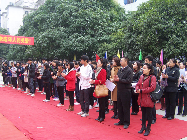 院党委宣传部讯(曾严) 2011年12月27日上午,由河池市文明办主办,广西现代职业技术学院协办的河池市未成年人心理健辅导中心在我院举行挂牌仪式,河池市委常委、宣传部长、副市长黎丽为中心揭牌。我院领导、市文明办、市教育局、市团委等部门领导及我院师生代表共350多人参加仪式。