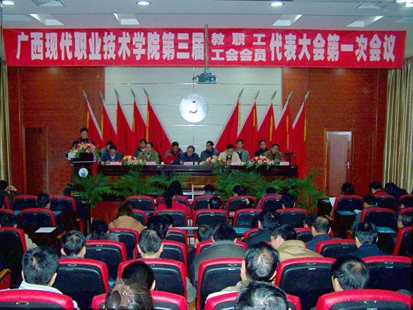 院党委宣传部讯(曾严) 2011年12月28日下午为期两天的广西现代职业技术学院第三届教职工代表大会第一次会议顺利闭幕。大会的主要任务是审议学院2011年工作报告、工会工作报告、年度财务预、决算报告,审议通过2011-2012学年度课时津贴、岗位津贴、高职称高学历科研补贴发放办法,选举产生新一届教代会执委会委员和工会委员会委员。