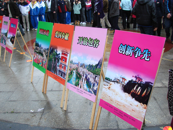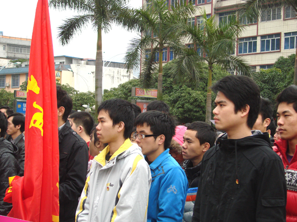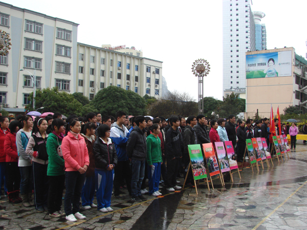 学院党委宣传部综讯(曾严 李媛媛) 2012年2月15日上午,河池市启动“弘扬广西精神,发扬老区传统”主题宣传教育活动,我院师生代表500多人和市直及驻河池中直区直各单位干部代表一起参加了启动仪式。河池市委常委、宣传部部长、副市长黎丽出席启动仪式并作动员讲话。