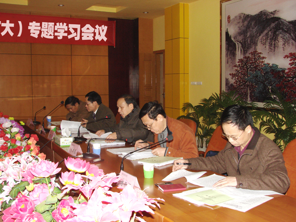 本站讯(曾严 田宇) 2012年2月21日下午,我院党委中心组(扩大)在学院第一会议室举行2012年第一次集体学习,学习郭声琨书记在自治区第十次党代会上的报告和河池市委黄世勇书记新春寄语领导干部系列文章,贯彻全区四个工作会议精神,专题研究我院今年“增量提质”工作。学院党委书记邓福田,党委副书记、纪委书记覃志航,副院长潘尚河、冯忠伟及全院中层正副职领导干部参加学习。学习会由党委书记邓福田主持。