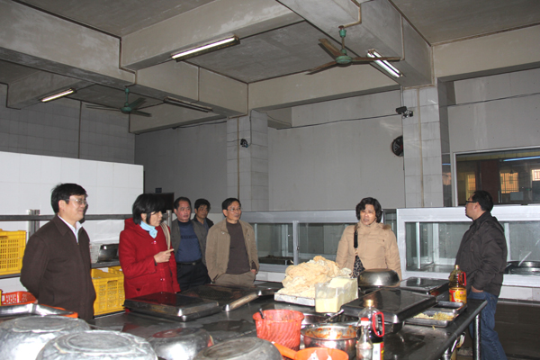 同时,检查组组长,自治区卫生监督所的张维萍主任医师、南宁市教育局保健中心主管医师朱宁湘两位专家在学院副院长冯忠伟、后勤管理处处长覃塘肖,副处长韦利宏及学生食堂专职工作人员随同下,到我院的一、二食堂,对餐厅、操作间、储藏室等处进行了实地检查。卫生监督所检查组详细了解了我校食堂从业人员健康状况、消毒设施的运转、原材料的购入、储存及加工流程等情况。并对食堂卫生管理、建筑布局,以及原材料采购、储存、食品加工是否符合食品安全规定要求等各环节进行了全面细致的检查。