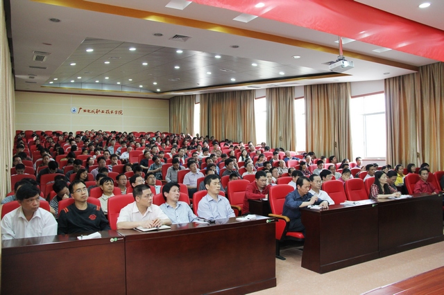 院党委宣传部讯(曾严 莫春燕) 2012年4月17日下午,我院召开“解放思想、凝心聚力、增量提质、赶超跨越”大讨论暨推进“五大工程”再动员大会。学院党委书记韦伟松,党委副书记、纪委书记覃志航,副院长冯忠伟及全体教职员工参加了会议。会议由覃志航副书记主持。