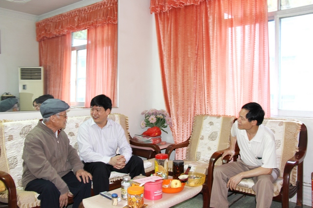 学院党委宣传部讯(曾严) 2012年4月27日上午,在五一国际劳动节来临之际,学院党委书记韦伟松,党委副书记、纪委书记覃志航,在学院组织人事处处长罗之尚的陪同下分别走访慰问了学院离退休老领导和老教师代表,带着学院党委和全体教职工的深情,为他们送去了节日祝福。