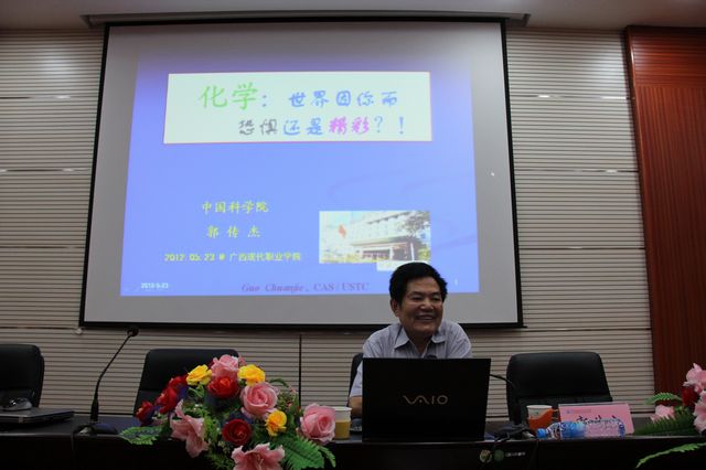 郭教授在题为《化学:世界因你而恐惧还是精彩?》的报告中,利用多媒体图文并茂地以我们日常生活当中的具体案例,从正反两方面分析了化学对人们日常生活的影响和作用,我国生化事业的发展以及生化技术的未来,不仅让同学们学到了知识还提高了强烈的环保意识,明白了做人的道理。整个报告过程中同学们不时报以热烈的掌声。讲演结束后,郭教授还设计了互动环节,对同学自由的提问,作出睿智而通俗的回答,会场气氛热烈,给学生们留下了深刻的印象。许多同学认为受益匪浅,纷纷表示要努力学习,为祖国的建设事业贡献自己的力量。