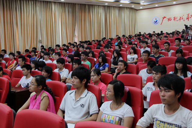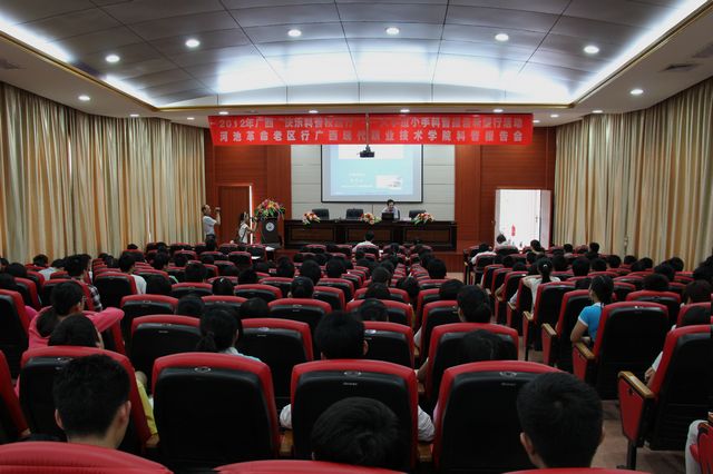 学院党委宣传部讯(曾严) 为深入贯彻党的十七届六中全会和自治区第十次党代会精神,进一步落实《全民科学素质行动计划纲要》,2012年5月23日下午, 2012年广西“快乐科普校园行”河池革命老区科普报告会在我院第二学术报告厅举行。报告会由中科院化学研究所研究员、博士生导师郭传杰教授主讲。广西科普演讲团团长、硕士研究生导师、原广西科协副主席蒋应时教授,学院党委副书记、纪委书记覃志航副教授,河池市科协调研员邱建强,河池市科协副主席韦炳富出席报告会。报告会由学院教务科研处处长韦胜东副教授主持。我院辅导员、学生代表300人参加了报告会。