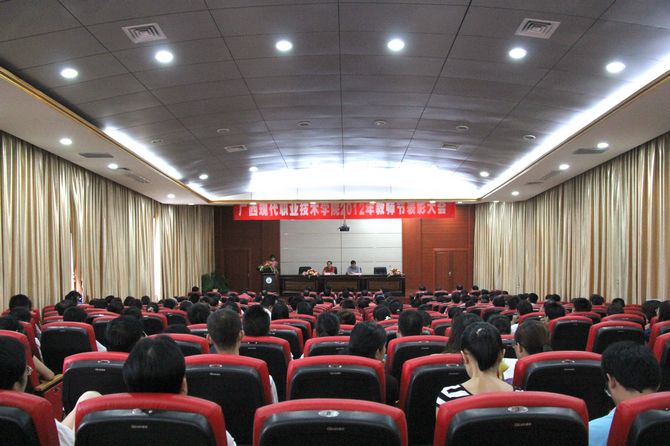 院党委宣传部讯(曾严 莫春燕) 教诲如春风,师恩深似海。2012年9月7日下午,在第28个教师节到来之际,我院在第二学术报告厅隆重举行2012年教师节表彰大会。党委副书记、纪委书记覃志航出席大会。会议由覃志航副书记主持。