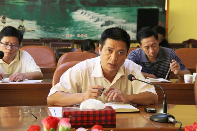 学院党委宣传部讯(曾严 ) 为进一步贯彻落实市委领导讲话精神,继续深入开展解放思想大讨论活动及“五大工程”建设,部署好新学年的工作,2012年9月11日上午,我院在第一会议室召开党委理论学习中心组(扩大)第四次会议,贯彻落实河池市委副书记秦斌在我院庆祝第28个教师节座谈会上的讲话精神,围绕 “当前我院机制和体制存在的问题是什么?如何改革创新我院工作的机制和体制?”作专题讨论,各部门汇报制定本学年工作计划情况。学院党委副书记、纪委书记覃志航,副院长冯忠伟出席会议,学院全体中层正职领导及讨论办人员参加会议。会议由党委副书记、纪委书记覃志航主持。