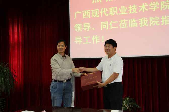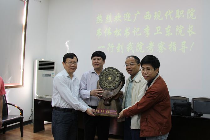 广西机电职业技术学院党政领导与我院党政领导互赠礼物