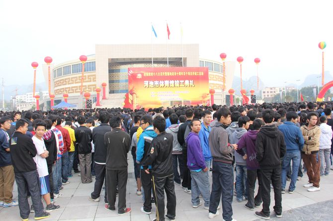 学院党委宣传部讯 2012年11月2日上午,河池市体育馆举行竣工典礼。市委书记、市人大常委会主任黄世勇宣布项目竣工交付使用,市长何辛幸致辞。我院全体师生参加了竣工典礼。