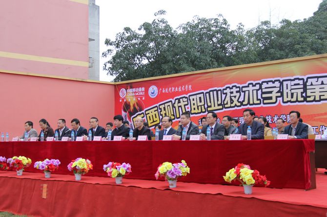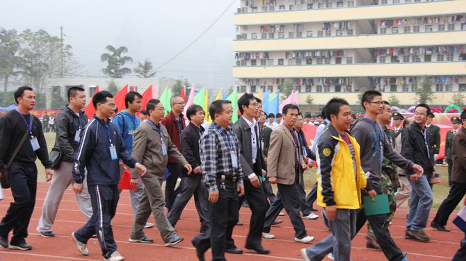 党委宣传部讯(曾严) 2012年11月22日上午,迎着秋日的清晨和微风,在党的十八大胜利闭幕之际,我校迎来了第八届田径运动会的到来。这一天,田径场上彩旗飘扬,热闹喧腾,我院第八届运动会开幕式在这里隆重举行。河池市人大常委会党组成员银建军教授出席开幕式并宣布本届运动会开幕,学院党委书记韦伟松,党委副书记、纪委书记覃志航,中国移动河池分公司副总经理潘雄,副院长冯忠伟,河池市职教中心副校长唐启焕、黄丹峻,中国移动金城江分公司总经理谭春喜、副总经理莫江及学院各职能部门、各系主要负责人出席了22日上午的开幕式。
