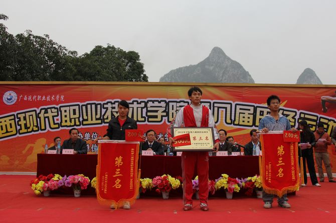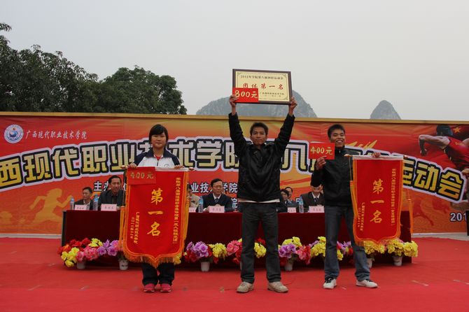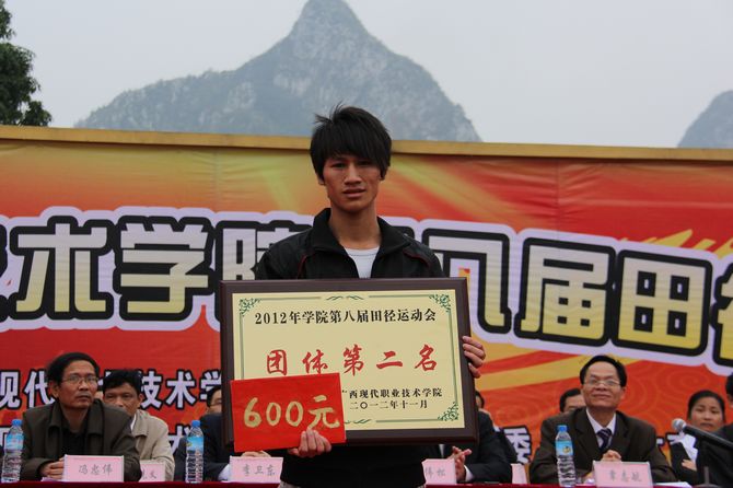 赛场上,来自机电工程系、管理外语系、电子电力工程系、计算机工程系、资源工程系及五年制大专班的运动健儿们以饱满的热情和良好的竞技状态投入到比赛中,展现了我院学子昂扬向上的精神风貌。比赛中,运动员们精神饱满、奋勇争先;看台上,观众们挥舞着手中的彩旗和标语,为参赛队员呐喊助威。经过两天的激烈角逐,电子电力工程系夺得了团体总分第一名,管理外语系、机电工程系分获第二、三名;管理外语系和五年制大专班荣获精神文明奖。本届运动会还首次增加了三人板鞋竞速迎面接力、背篓接绣球两个民族体育集体项目,五年制大专班和管理外语系分获两个项目的第一名。与会校领导亲自为获奖单位颁发了牌匾、锦旗和奖金。